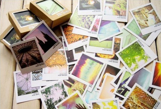 lomo卡就裝在上面的鐵盒里,接下來,我就開始欣賞里面的卡片照片,總共十八張,我將她鋪開來: