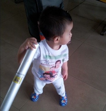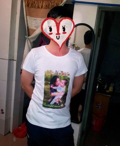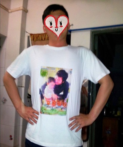 親子裝的相片個(gè)人還是很喜歡的,洛洛一穿上這個(gè)性T恤就指著肚子給人家看,嘻嘻,自豪著吧!我和洛爸穿著他也指著相片"啊,啊,啊"的.....