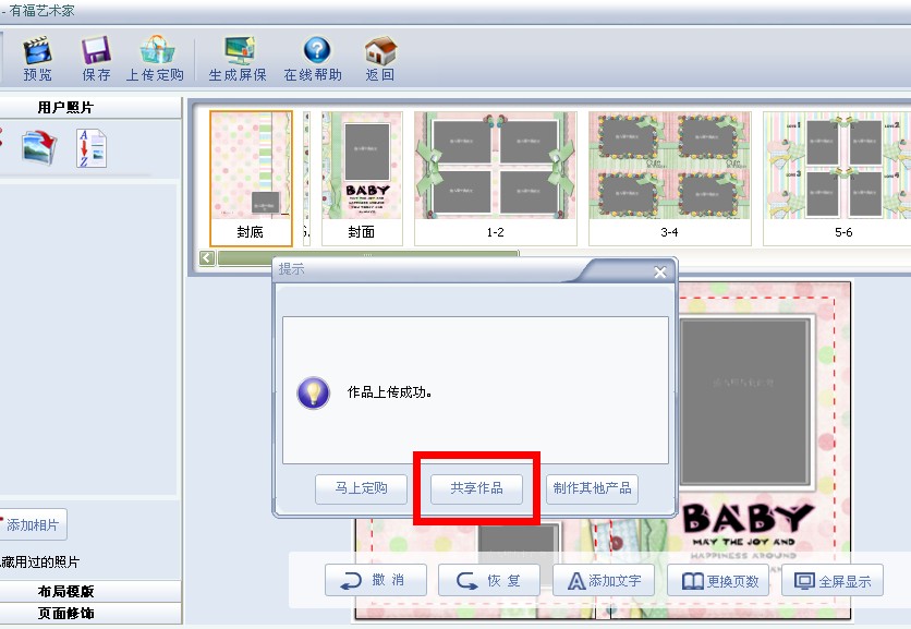 4、制作完畢后上傳訂購(注:只要不付款不會產生消費)。