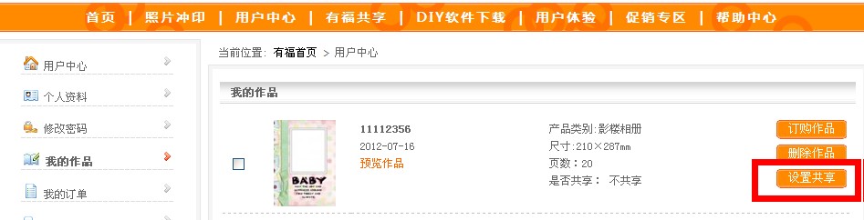 6、系統將跳轉至會員中心,簡單填寫作品信息,確認共享即可。