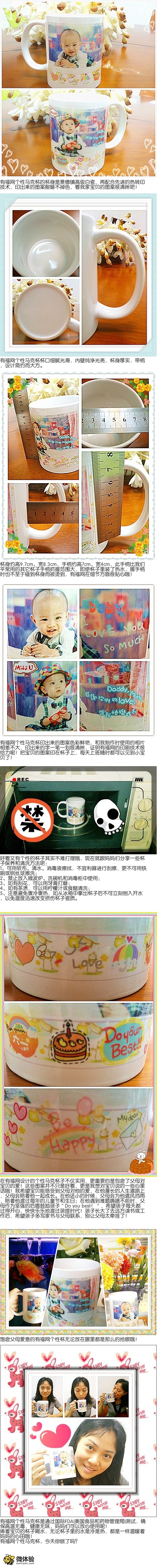 當了媽媽后,很享受親子時光,自從上班后,每天早上上班看著寶寶甜甜睡著的樣子,或者寶寶爬過來抱著我不給我走的時候,真的很舍不得。最近在有福網做了一個寶貝的個性馬克杯,終于不用飽受相思之苦了。