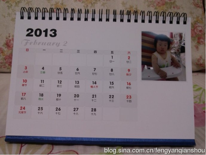 當我發布這篇“臺歷流程篇”的轉天,也就是2012年的12月31日,晚上下班看到了已經擺在桌子上的臺歷,甚是興奮,我走過去,拿過來,一邊看著這份新年最好的禮物——有福網的寶貝臺歷,一邊和家人聊起收到臺歷時的小心情,家人都給出了大大的好評,而我,拿在手里也不忍放下,對這本臺歷真是愛不釋手。它制作的很精良,顏色很正,印刷效果很棒,每一張照片的圖片都能很好的得以展現,再配以主題式邊框,生動、有趣、值得珍藏與紀念的一本十足有愛的臺歷就這樣誕生了!