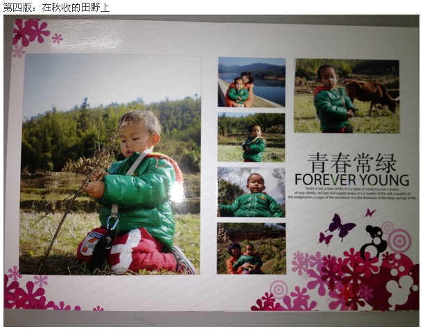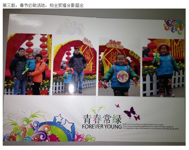 在有福網(wǎng)有做了一本相冊。到某論壇上領(lǐng)取的優(yōu)惠券,2013年3月31日前有效。怕過了期,浪費(fèi)一個美好的相冊,于是又花了2個中午休息時(shí)間,趕制作了這本主題為“青春常綠”的相冊。這次的相片全部取材于2013年春節(jié)假期那幾天我們的活動。