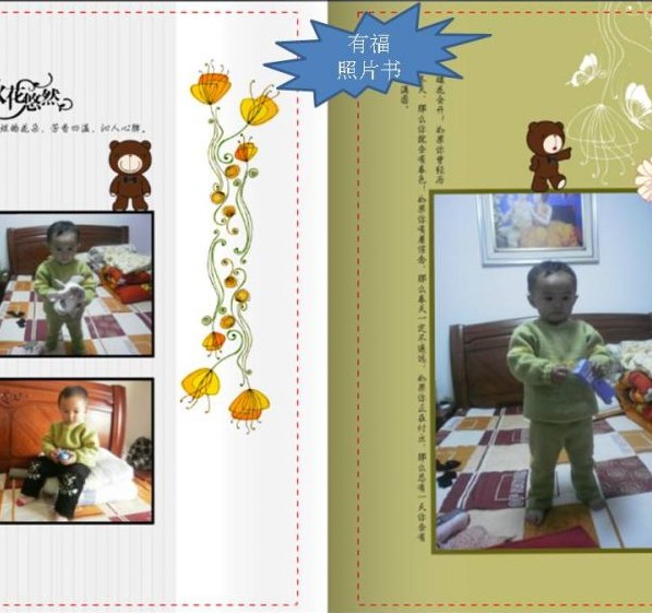第一次在有福網(wǎng)上做了照片書,終于花了一個上午,制作了寶寶的個性雜志,書的質量很好,很清晰。模板多樣化,挑得我都不知道選哪款,哈哈哈。每款都好精美哦!