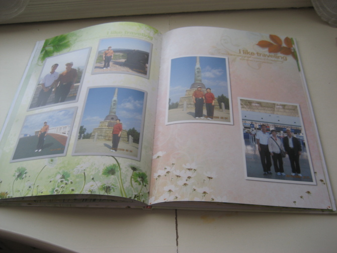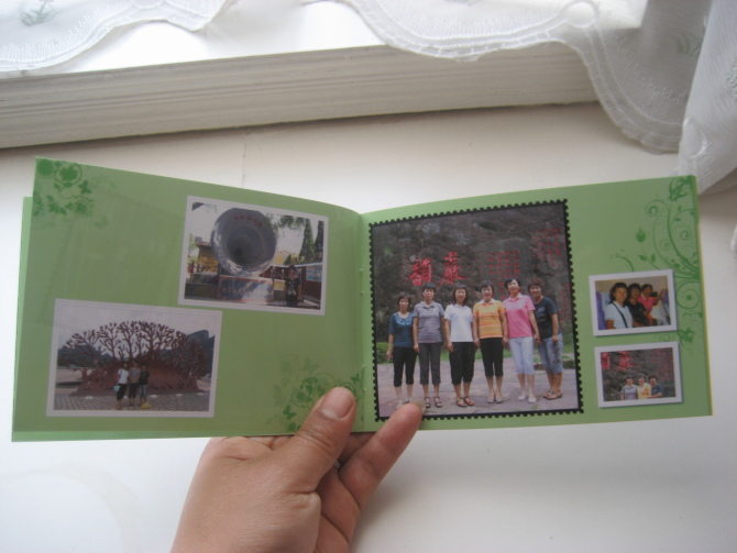 雙休日的時候,在家里把旅游時拍的照片做了一下整理,將兩個畫冊定了稿,周一就把畫冊上傳給了有福,沒想到有福的工作效率特別高,周四我就收到他們寄來的畫冊了。第一次在網(wǎng)上做照片書,心里一直犯嘀咕,怕出來的效果不好,可是沒想到,當(dāng)我打開照片書的時候,我真的是愛不釋手。下面是我收到的有福照片書實圖,這個是12*8英寸的