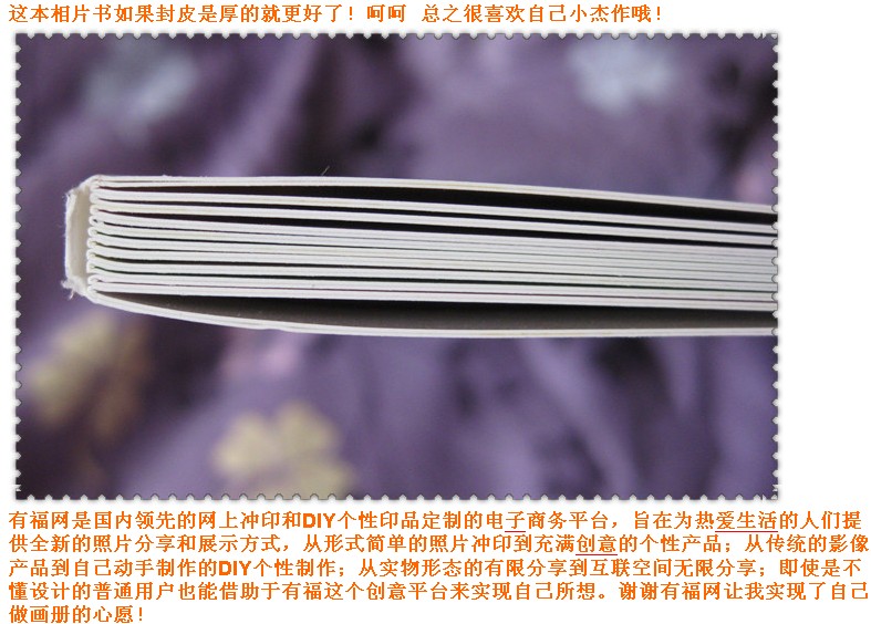 慕橙平時喜歡把家人和自己的照片進行整理和歸類,曾經(jīng)好多的照片都拷在了我的移動硬盤上,可是去年把移動硬盤借給朋友,不幸的丟失了!很是煩心,哈多照片都是無備份的啊!從那以后慕橙更加小心翼翼每張照片!之前自己還經(jīng)常在淘寶上找制作相片書的店,想著把我現(xiàn)有的照片都制作在一本書里。