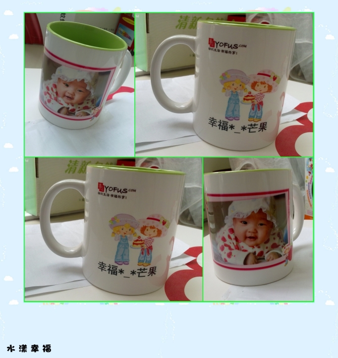 從別人博客里看到了有福網http://m.yuanfeng-zs.cn, 這個對于照相狂人的我來說,真是個好地方,沖洗照片很方便,各種各樣個性產品都可diy,那天閑著無聊給寶貝隨手設計了這個杯子,今天寄回來還覺得真不錯呢。。。杯子質地比較光滑,畫畫也很可愛,是個不錯的紀念品,保準是世界上獨一無二的杯子呢...此外,這個網站寫日志送照片書的活動非常吸引我,一定要精心給孩子做一套照片書,好好參加這次活動....