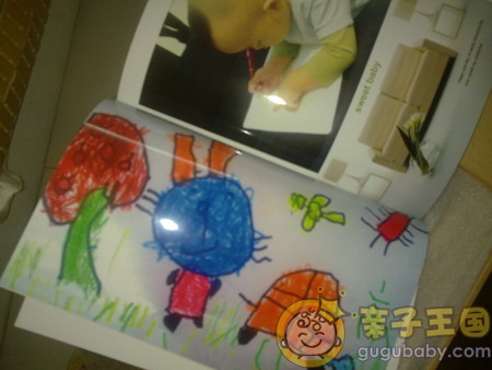 在雜志照片制作時(shí),我還發(fā)現(xiàn)可以拿來發(fā)表寶寶的作品,這比一張一張保存寶寶作品省事多了,絕對(duì)是寶寶的真跡啊,咱來個(gè)有圖又真相。。。。看見沒,絕對(duì)是寶寶在旁邊自己動(dòng)手畫的,但是好像筆不是水彩筆,呵呵~