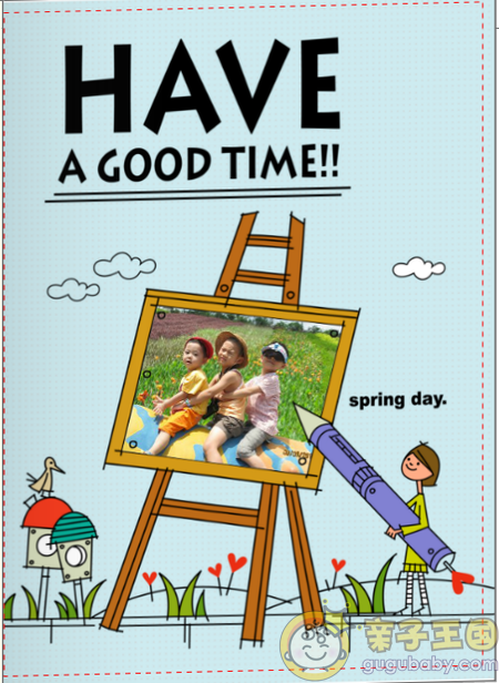 我選的這個模板是QQ版,走可愛路線,配上小朋友的相片,效果挺好的。我相信如果用專業相機拍的相片,出來效果將會更美!