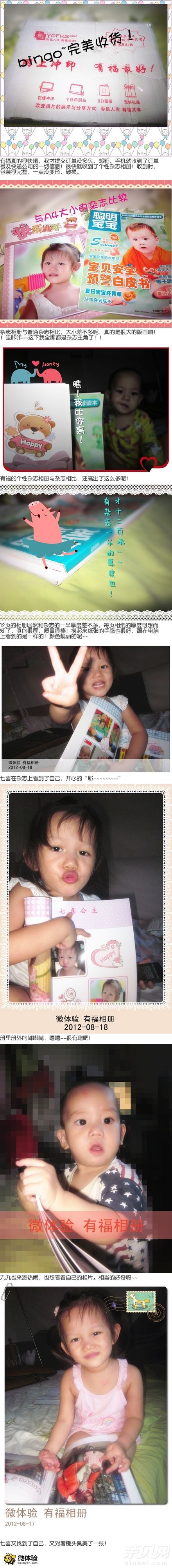 不知真相的外婆看到了相冊,第一句話居然是:“哇,七喜上了雜志封面了呀!”后來我忙解釋這是有福的雜志相冊,外婆才反應過來還有這樣形式的相冊~~太新潮了!我看到孩子這么幸福的笑容,這次真的要謝謝有福網舉辦的活動,我一定會好好珍惜這本特殊的相冊的!@有福網官方微博 @一起微體驗