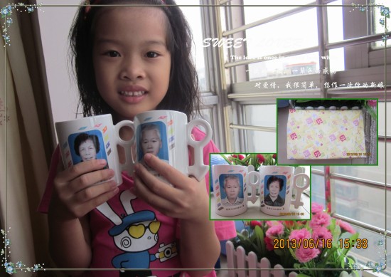 思思聽說我要送杯子給外公外婆,還鬧著非要自己親自動手把杯子用彩紙包好,說要親自送給外公外婆。我笑著說父親節你應該送禮物給你爸爸,我送我爸爸,你干嘛要和我搶呀。