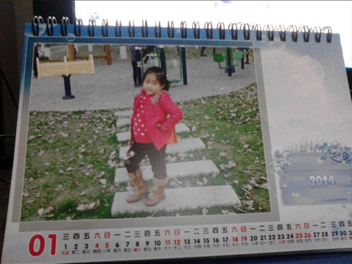 我趕緊掏出手機,“咔、咔”拍了幾張后,打開了包裝紙,熟悉的底色---藍色馬上映入眼簾,跟去年的一樣,一直以來,還是特別的喜歡有福網(wǎng),因為他們的制作水平相當?shù)母撸掌Ч邦伾继貏e的好。這種八寸雙面臺歷采用的是雙面印刷的,正面是大圖設計,美觀又直觀大方,反面是大日歷小圖設計,方便查看日期,它的頁數(shù)一其是12張(24頁),紙張是250G銅版紙,制作工藝是惠普Indigo印刷,裝訂方式也很特別,是采用可折疊紙板底座,YO圈裝訂,精致又牢固的同時,也特別的容易方便翻頁。說了這么多,還是來看看我用美圖制作的臺歷照片吧!