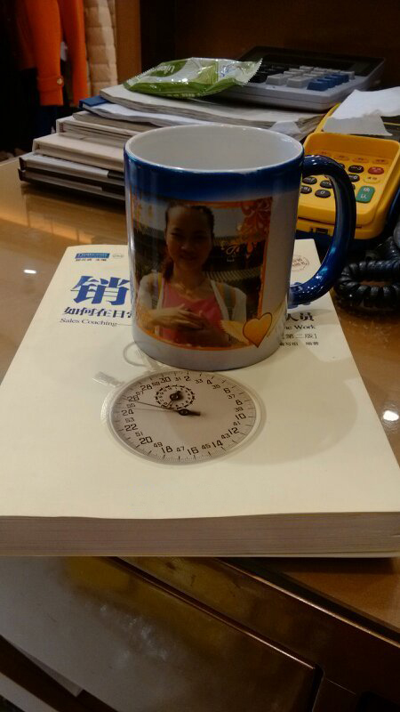 這是在有福網制作個性臺歷后,提交個性臺歷試用報告后,又連環得到變色杯子。這個杯子超漂亮,很厚,比以前在網上制作 的杯子質量都好,收到后,銘第一時間打開,然后燒開水親自實驗。這東西真的很神奇哦,寶藍色的杯身,不加入熱水,隱約可見銘的照片。加入熱水后,神奇的一幕出現,杯子隨著熱水的溫度慢慢變成白色,銘的藝術照片也顯露出來,太神奇太漂亮了,感謝有福網!