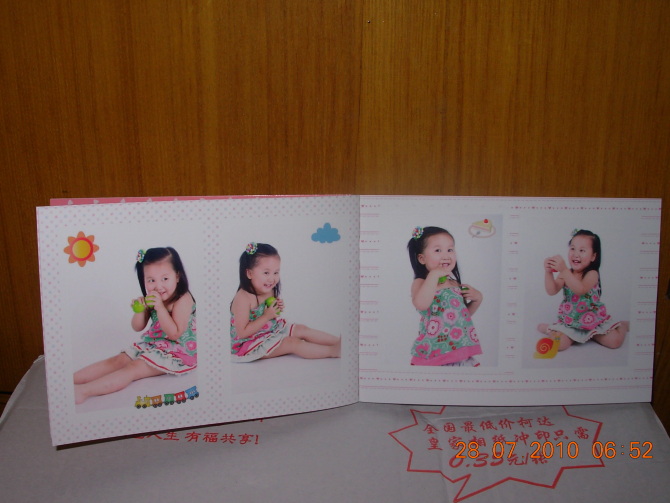 妮寶拍過生日照片后,有好多相片沒入到套系冊子里,于是在網上搜照片沖印,搜到了有福網,第一次注冊有掌中寶體驗畫冊,體驗價才10元,并且有專門的制作軟件,可以根據自己的喜歡的裝飾照片,而且正趕上運費優惠,支付寶支付運費僅需3元,于是抱著試試看的心情把照片上傳過去,當天就收到確認電話,第三天就到貨了,畫冊制作非常精良,紙張也很厚實,可以隨時放到包包里與朋友們分享,真是物超所值,朋友們都說好,紛紛表示要上有福網沖印照片。