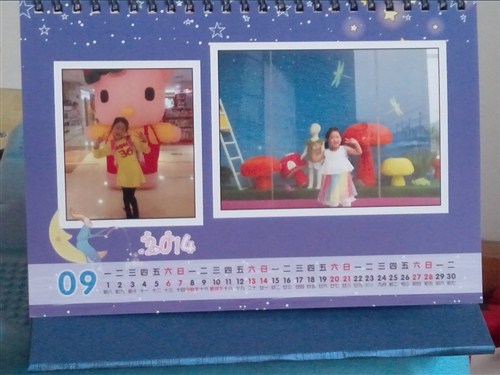 昨天,我終于收到了盼望已久的2014年個(gè)性臺(tái)歷。一打開(kāi),就迫不及待地看效果,一頁(yè)頁(yè)翻了個(gè)遍。天哪,真想擁抱有福網(wǎng)的工作人員啊。他們果然精心為我裁切,臺(tái)歷上面的日期全部能顯示出來(lái)!有的頁(yè)面我知道是裁切掉一點(diǎn)兒的,不過(guò),日期沒(méi)被切掉,切掉的是另一邊的沒(méi)內(nèi)容的部分。足見(jiàn)工作人員的細(xì)心。
