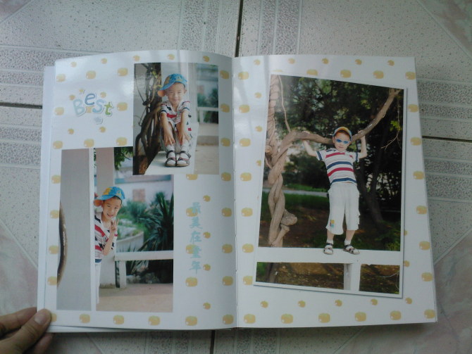照了不少照片,有四十多張,這次我們選擇在有福網(wǎng)上給他DIY做了一本相冊(cè)。把自己喜歡的照片全都放了進(jìn)去,不用向以前在攝影店里擔(dān)心超出套系數(shù)量還要額外補(bǔ)錢,呵呵。而且大姨的DIY 水平很高,做出來(lái)的相冊(cè)真的很漂亮,印刷裝訂都很專業(yè),而且只要一百多塊錢,真是超值!