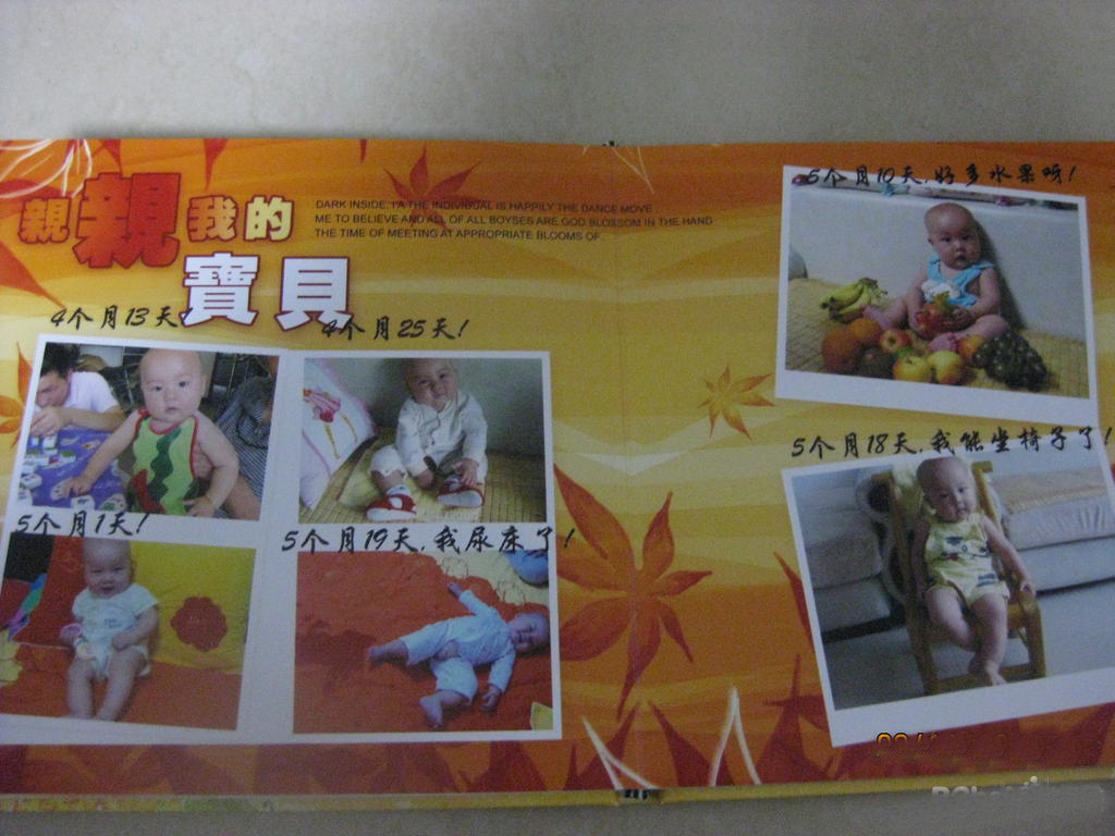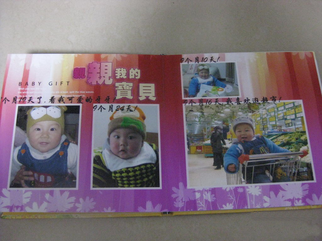 做這個相冊對我來說不是很難,因為之前我已經在有福網上學習了好幾遍了,呵呵。好幾個版本的相冊,我選了一個色彩比較艷的,后來看到好多親都選的這個。我做這個相冊的主題是超超的成長,從超超開始出生時我就給他留下了相片,我就打算做他的成長相冊,每個月都有他的照片,而且我還細心地注明他的月齡。經過了下軟件,選相片,開始DIY,查看效果一系列的工作,從晚上七點吃完晚飯開始做直到超超睡著,我又接著做,到十一點多我才全部完成,第二天就提交了訂單,付款。接下來就是等待了。有福網的速度還真是快,本來我擔心在2月13日沒收到相冊不能寫報告的,結果在今天早上我就收到了相冊。真是高興啊,我迫不及待地打開包裝,呈現在我眼前是一本令我驚奇的相冊,質量好的沒話說,手感也相當好,同事們看到都說不錯,問我多少錢,我讓她們猜,都說沒個一兩百做不出來,等我說出價格時,她們都難以置信地看著我,大呼我真走運,呵呵。后來一個朋友還讓我給她的寶寶也做個,我說可能沒這個優惠的活動了,她說沒有優惠的活動也比影樓里便宜啊。