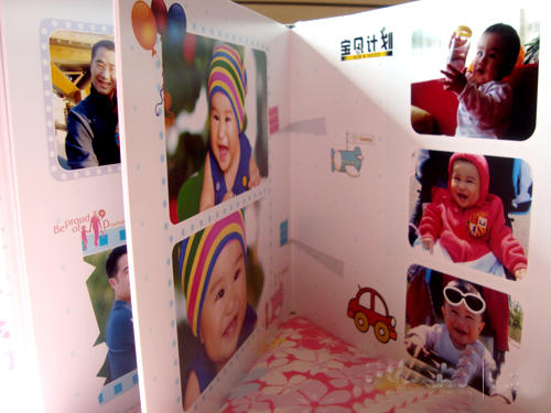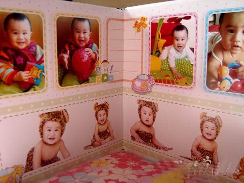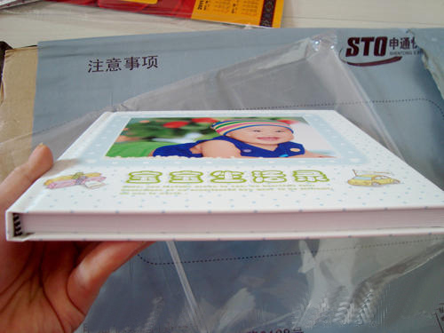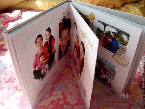 今天一早聽到門鈴響,(其實都不早了,因為最近兒子半夜總哭鬧,所以早晨起的特別晚,有時間就想睡覺)心想誰啊吵了我的覺,打開門一看是快遞,迷迷糊糊的也沒反應過來是哪發(fā)來的,匆忙簽收了,包裝挺大個的,還挺沉,心想難道是老公偷偷給我買的禮物,因為最近兩天老公出差了,帶兒子好累,把制作相冊的事忘記了,找著剪刀,三下五除二打開了,眼前一亮,哇,不由的叫著影樓相冊,兒子正咿咿呀呀的沖我叫著,我對兒子說,家銘你的相冊到了,媽媽先看看,你乖乖的啊,拆的過程中,突然想起要寫心得呢,還要照片,趕緊找來相機,一頓狂拍,從地上拍到了床上,(因為怕效果拍不好)相冊效果相當好,因為自己以前在兒童攝影上過班,這樣質量的相冊在店里都得好幾百一套呢,質地、做工沒的說。快遞包裝也特細心,感覺心里暖暖的,看了制作的掌中寶、年歷,還有明信片,質量都超級好,顏色特正,就是有些照片我自己調的太亮了,以后就有經驗了,呵呵,羅嗦了這么多,快看照片吧,相機拍的不好,實物要好看的多的多,以后洗相片,做影樓相冊就認定有福了,哈哈,方便、快捷!!超喜歡!!!