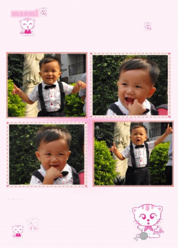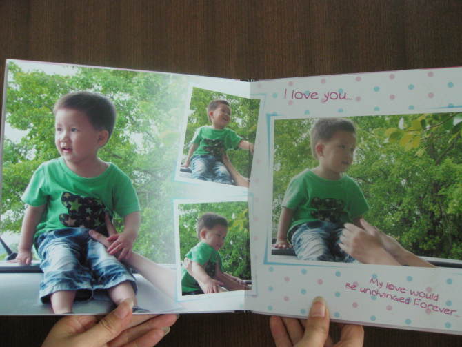 不知不覺,兒子已經兩歲了,從一個襁褓中的小嬰兒到現在一個小大人似的,會跑、會說、會唱歌,還會和媽媽斗嘴了,可我還沒曬過他的相片呢。好多朋友都說還沒見過我兒子呢,讓我寄些相片給她們解解饞,我就是一直拖著。因為我覺得到外面的相館洗出來的相片沒什么特別,自己用PHOTOSHOP做吧,又很麻煩。廣州的一個同學年初的時候就介紹自己上有福網曬相,做相冊,既漂亮又劃算!我抱著將信將疑的心態,前陣子就試著在上面做了一本照片書和兩套明信片。第一次做相冊,手腳有點笨,自認為效果不怎么樣,誰知道相冊一拿到手,效果竟是這么好,出乎我的意料!原來自己兒子這么上鏡,呵呵!趕緊把那些明信片寄給好友們,讓她們也分享一下自己的喜悅!我還把兒子的相冊拿給同事們看了,大家都說效果真好!都問我在哪做的,這么漂亮。我立即介紹她們上有福網去做。有福網的軟件真的很方便,很多模板提供選擇,省時省力,效果還很不錯,很有紀念意義。我還準備把兒子從出生到現在的相片都給做成相冊,好好收藏,作為他成長的一個記錄。和大家分享一下我兒子的相冊.jpg)