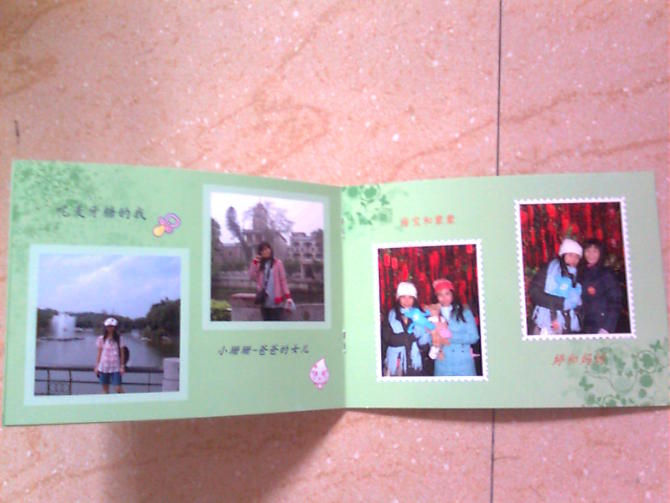 第一次在有福網做相冊還有其他產品覺得好新鮮,但是看起來簡單其實挺麻煩的,因為要配圖片、插圖還有文字。圖片要選相素高的,好配的,挺費心思的!做得時候要小心翼翼,不停得修改做比較,改效果、改顏色、圖片擺放改位置!但是看做出來的效果又挺滿意挺滿足的!但是產品就是有點小有點?。贿^沒關系,易于收藏!做好的產品我喜歡不時拿出來看,都不舍得送給人家了,呵呵!