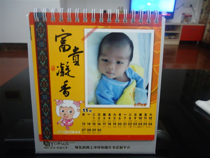 前幾天通過朋友知道了有福網這個網站,注冊后發現最近在做活動可以免費做臺歷,說做就做,花了幾天終于幫小睿睿設計好了臺歷的樣式,馬上訂購了,由于是免費的活動所以沒有把這事放心上,可過了兩天我收到了郵件說我的臺歷已經完工現在正準備寄來,郵件了還有快遞單號,可以在網上查詢的!隔天我就收到了臺歷,啞光的臺歷顯得挺高檔的!質量也不錯,我很開心,這是我送給小睿睿的第一份禮物!屬于他自己的個性臺歷!