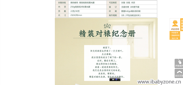 首先選擇模板,網站頁面上的模板樣式很多,有最新風格、時尚寫真、旅行、愛情、畢業(yè)、兒童類別,應有盡有,總能挑選出自己喜歡的一款,我看上的是【通用】模板里的妙曼碎花風格,可是存放的照片數(shù)量太少了,后來兒子自己選擇了一款簡潔淡雅的【兒童】模板,他說不喜歡特別鮮艷的顏色,我看了以后也感覺兒子選擇的那款風格很符合我家的審美情趣,就很快確定下來,此模板可收納圖片70張以上,感覺有福的產品有個性、有品質,還不乏時尚感,彰顯個性、珍藏美好!我用親手拍攝的圖片給孩子打造一本專屬精美紀念圖冊,是全家最美的回憶,也是視覺的享受。相信我們每次翻看都會有不同的感受!
