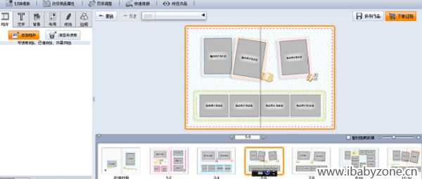 然后開始編輯,把所有要添加的照片一次性添加到相冊里,這樣拖拽的時候會很快捷,并可以隨時更換圖片。每做完一頁,都不要忘記保存,不然前功盡棄,還要重新來過,那可就浪費時間浪費感情嘍。