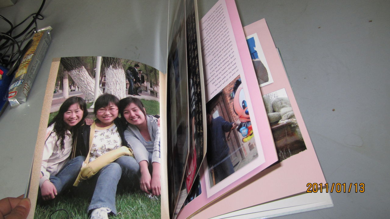 前些時候一個朋友給了我有福網的地址,是可以沖印照片、做個性臺歷做照片書的,還可以做林嘉欣在《愛情呼叫轉移2》中的那種變色杯,可以做的東西很多,我試著做了一本照片書,這會兒已經快遞過來了 ,真漂亮,同學們都很羨慕我,下面讓大家看看我的照片書。