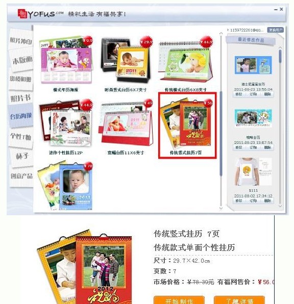 一直想給女兒制作一本掛歷,上了有福網(wǎng),看到了這款個(gè)性?huà)鞖v十分喜歡??墒俏蚁螺d完一直沒(méi)有做成功,說(shuō)起來(lái)自己還真是有點(diǎn)笨呢,看到親們一個(gè)個(gè)都做的這么簡(jiǎn)單,為什么我做起來(lái)就那么難呢。我做了幾次,上傳完照片后都不能跳轉(zhuǎn)會(huì)員中心,沒(méi)辦法只好停下來(lái),也去過(guò)QQ群尋求答案,有朋友說(shuō)自己的都能跳轉(zhuǎn)啊,是不是我系統(tǒng)的問(wèn)題啊,就這樣一來(lái)二去耽誤了不少時(shí)間,臺(tái)歷也沒(méi)做好。但我還是想做本有寶寶的臺(tái)歷,最后我又一次在筆記本電腦上重新下載了有福軟件,這次也算功夫不負(fù)有心人,掛歷終于做成功了。