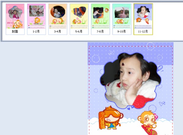 選擇好傳統(tǒng)豎式掛歷 7頁(yè)的就可以進(jìn)入選擇自己想要的模板了,有好多種類(lèi)的,我選擇的時(shí)卡通類(lèi)的小猴子的那個(gè)模板,我覺(jué)得不錯(cuò),很適合寶寶的。