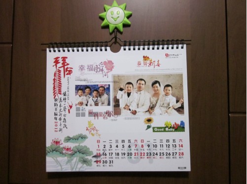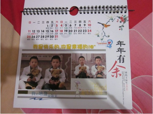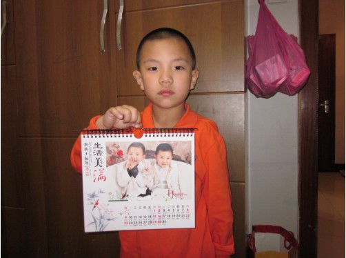 這是第一次給雙寶做這樣的日歷,小家伙們看了,愛不釋手啦,哈哈,大寶還和日歷合了個影,表情很嚴肅哦