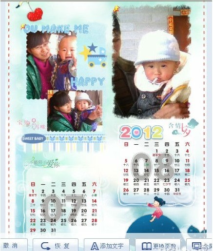 第一次走進有福網,制作個性掛歷,只需15分鐘、7張寶寶的照片,就可以設計出你家寶寶專屬的2012年個性掛歷,讓寶寶的笑顏伴隨你365天。