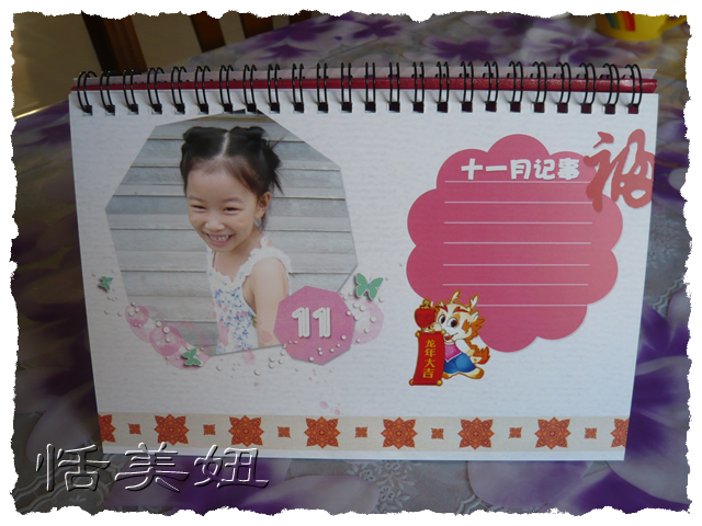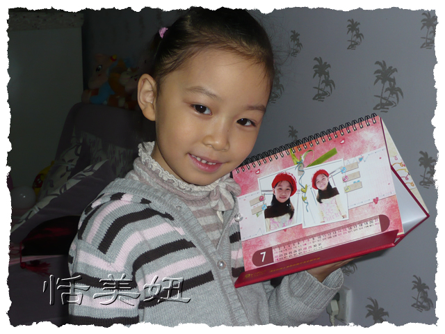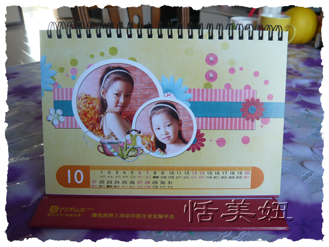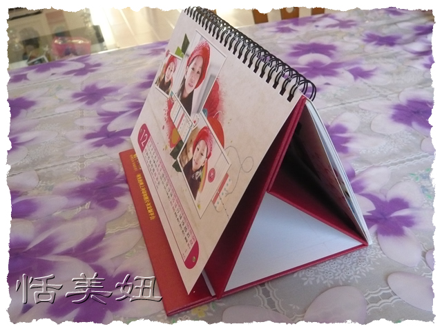 去年就在有福做的8寸臺歷,還特別自己設計了模板,今年在舊模板的基礎上,稍加改動,重換了日歷條,用的恬恬五周歲藝術照,效果相當好了。依舊是8寸臺歷,依舊是正面雙面的。