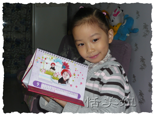 有些心急,今年早早就在沈陽某網,購買了臺歷,結果是大失所望,漂亮的恬美妞印成了黑妞,實在氣憤。有福網在媽咪愛搞活動,我才如夢初醒般,去年在有福做的臺歷,送給恬恬幼兒園的老師,至今還擺在她的辦公桌。那色彩、那紙張、印刷質量都非常棒。為自己當初沒再選擇有福而懊悔,于是馬上動作。