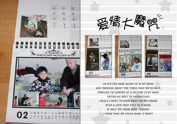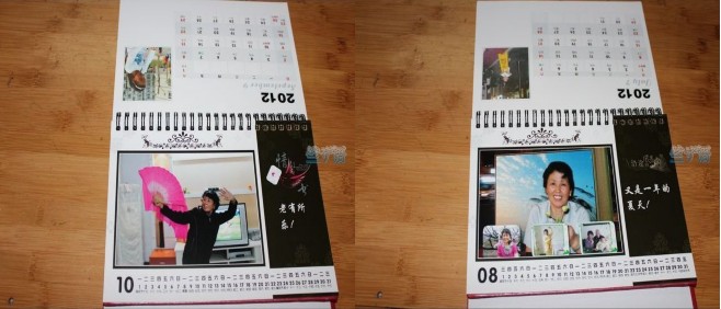 個性臺歷8寸的,就想著給父母做一個。平時不管是我家的孩子,還是我哥家的孩子,都要周末才會有時候去我父母家,因為我哥也不是跟我父母住一起的。所以呢,想做這樣一個臺歷,這樣每天老人都能翻翻。因為臨時想到做的,我電腦里,侄女和侄子的照片也不多,我就用了幾張我父母的照片,有幾張給他們拍了還沒沖印出來。這會做臺歷就幫他們做過進去得了。