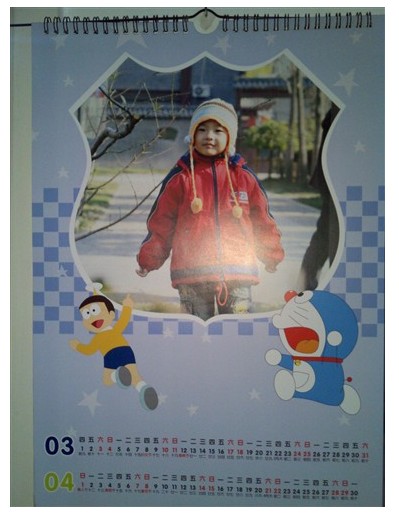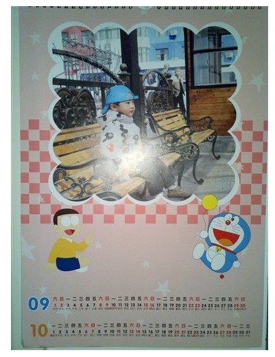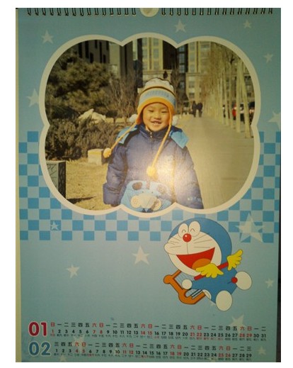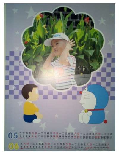 制作方法依然是在線用有福的制作模板,模板種類很豐富,我選擇了源源喜愛的機器貓背景,趕緊掛歷比臺歷的制作方法還要簡單,只需要把選好的照片直接添加到現成模板里就OK了,我統共花了10分鐘的時間,一本精美的7頁掛歷就制作完成,贊一個!