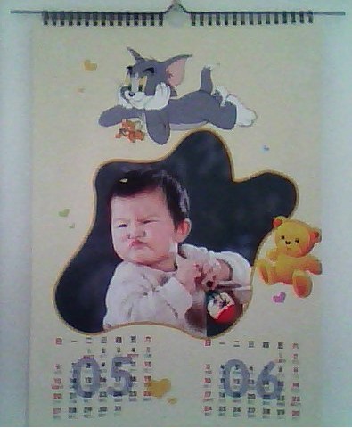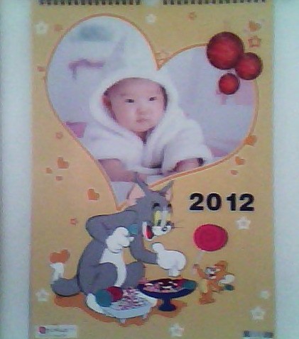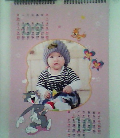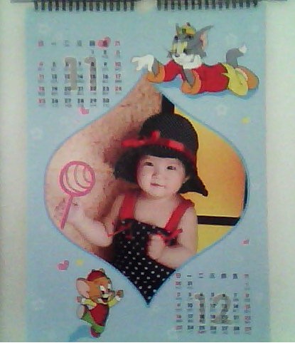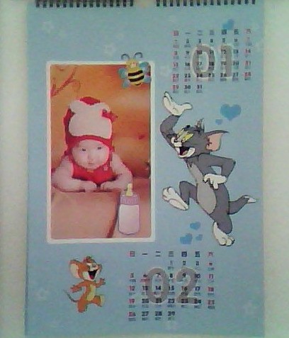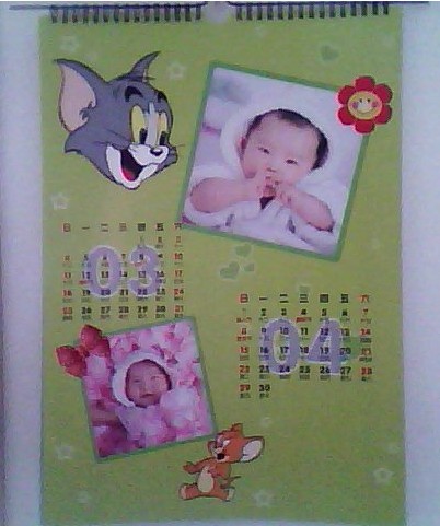 這個是掛歷的封面,小孩子的東西嘛,就要卡通一點。平時女兒最愛哼唱的就是“小老鼠上燈臺”,所以我就給她選擇了貓和老鼠的版面。
